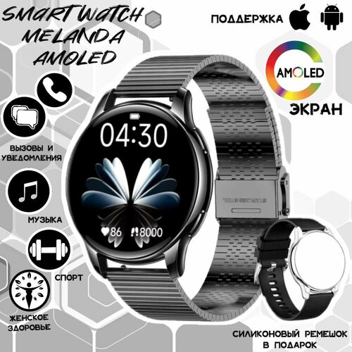 Купить Умные часы для женщин MELANDA AMOLED, голосовой ассистент, женское здоровье, черные с доставкой по всей России.
