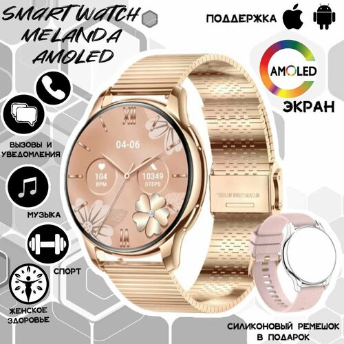 Купить Умные часы для женщин MELANDA AMOLED, голосовой ассистент, женское здоровье, розовое золото с доставкой по всей России.