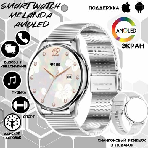 Купить Умные часы для женщин MELANDA AMOLED, голосовой ассистент, женское здоровье, серебристые с доставкой по всей России.