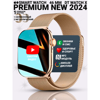 Купить Умные часы DT WATCH 10, Смарт часы watch X, premium smart watch, 46 мм с NFC, 2 ремешка, Золотой с доставкой по всей России.