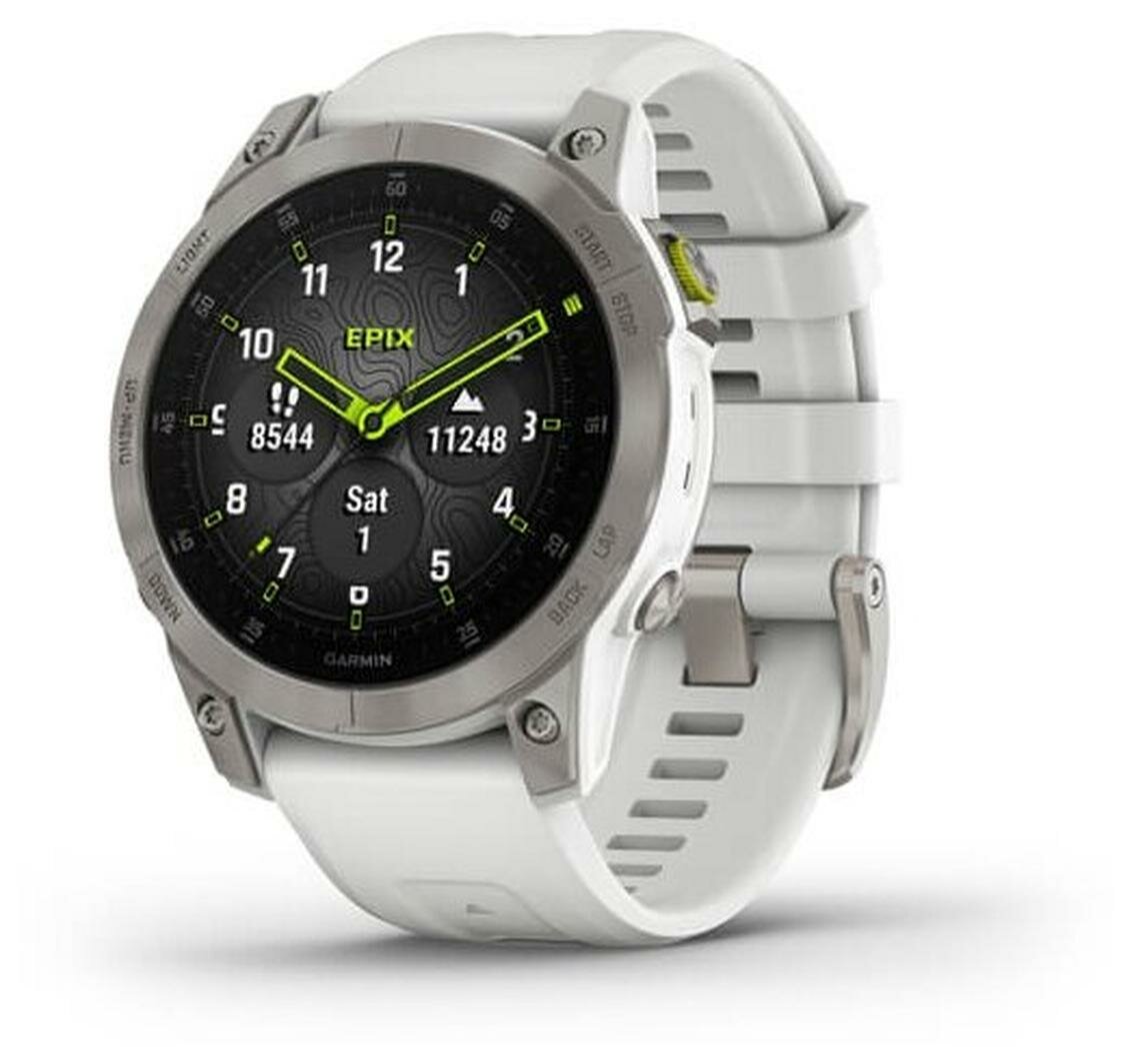 Носите Epix. Станьте легендой. Благодаря интеллектуальным оповещениям вы останетесь на связи в любой ситуации. Продолжайте тренировки с помощью встроенных спортивных приложений. Большая область спутникового покрытия – более точный расчет местоположения. Чувствуйте себя уверенно во время навигации с картографией TopoActive под рукой. Пусть приключения не заканчиваются – батарея обеспечивает до 16 дней работы в режиме смарт-часов. Разработано для вашего стиля жизни Потрясающий постоянно включенный AMOLED-дисплей 1,3” обеспечивает отличное изображение даже при ярком солнечном свете. Сенсорный экран и кнопки Надежный кнопочный интерфейс, работающий в любых условиях окружающей среды, сочетается с чувствительным сенсорным экраном для быстрого доступа к опциям и функциям. Премиальные материалы Благодаря сапфировому дисплею, а также кольцу вокруг циферблата из титана или нержавеющей стали часы приобретают актуальный внешний вид, соответствующий вашему образу жизни. Наблюдайте за параметрами здоровья 24 часа в сутки. Пульсоксиметр Пульсометр на запястье Слежение за дыханием Узнайте, как вы дышите в течение дня, во время сна, а также во время дыхательных упражнений и занятий йогой. Отслеживание стресса Баллы сна и расширенное наблюдение за сном Монитор энергии Body Battery TM Отслеживание количества потребляемой жидкости Измеряйте спортивные показатели. Спортивные приложения Используйте предзагруженные профили занятий для кроссового бега, плавания, бега, велоспорта, туризма, гребли, горных лыж, гольфа, серфинга, скалолазания в закрытых помещениях и т. д. Анимированные тренировки Garmin Connect TM при сопряжении с совместимым устройством. Тренировки HIIT Garmin Coach Бесплатные адаптивные планы тренировок с инструкциями от ведущих тренеров подстраиваются под ваши возможности и цели. Тренировки загружаются прямо на часы из приложения Garmin Connect. Визуальный прогноз результата соревнований Технология PacePro TM VO2 max Ваши тренировки могут стать более продуманными с VO2 max, индикатором ваших физических возможностей. Этот показатель корректируется для кроссового бега и учитывает изменения в вашем состоянии, вызванные жарой или условиями высокогорья. Спортивные показатели Выносливость в реальном времени Используйте эти данные для отслеживания своих усилий и управления ими. Эта функция помогает избежать переутомления в начале беговой или велосипедной тренировки. Ежедневные рекомендованные тренировки Устройство ежедневно выдает беговые и велосипедные рекомендованные тренировки, основанные на текущей тренировочной нагрузке и статусе тренировки, а также учитывающие ваш уровень физической подготовки. Время восстановления Динамика MTB Отслеживайте детальные данные каждой поездки на горном велосипеде, а также специальные параметры GritTM и FlowTM, позволяющие оценить сложность трассы и плавность вашего спуска. Устройство выдает цифровые данные, которые вы можете попытаться улучшить в следующий раз. Внетрассовое катание Динамические данные для занятий беговыми лыжами Функции для серфинга Поддержка нескольких систем GNSS Устройство обеспечивает доступ к нескольким глобальным навигационным спутниковым системам (GPS, ГЛОНАСС и Galileo). Использование нескольких частот, передаваемых навигационными спутниками, позволяет улучшить точность позиционирования в обла