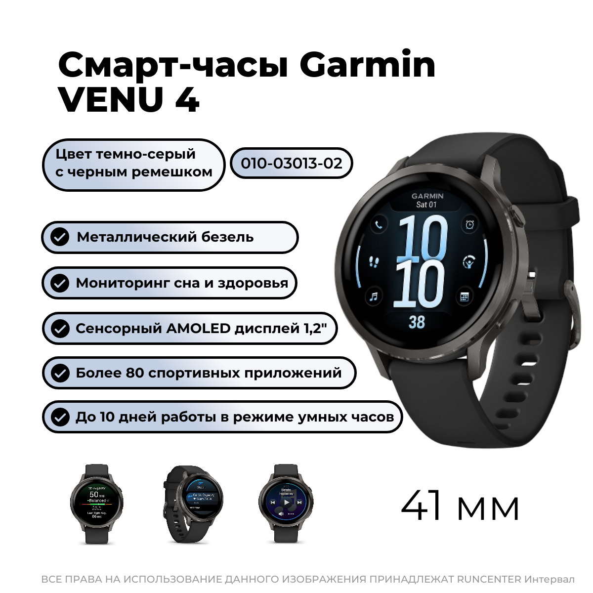Купить Часы Garmin Venu, AMOLED, влагозащита, пульсометр, с силиконовым ремешком с доставкой по всей России.