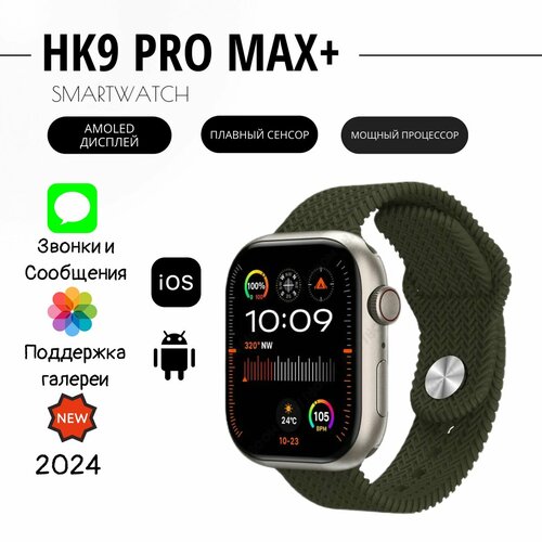Купить Умные часы HK9 Pro Max Plus, Смарт часы HK9 Pro Max+, 47mm, iOS, Android, Bluetooth звонки, Уведомления, Шагомер, AMOLED, Зеленый с доставкой по всей России.