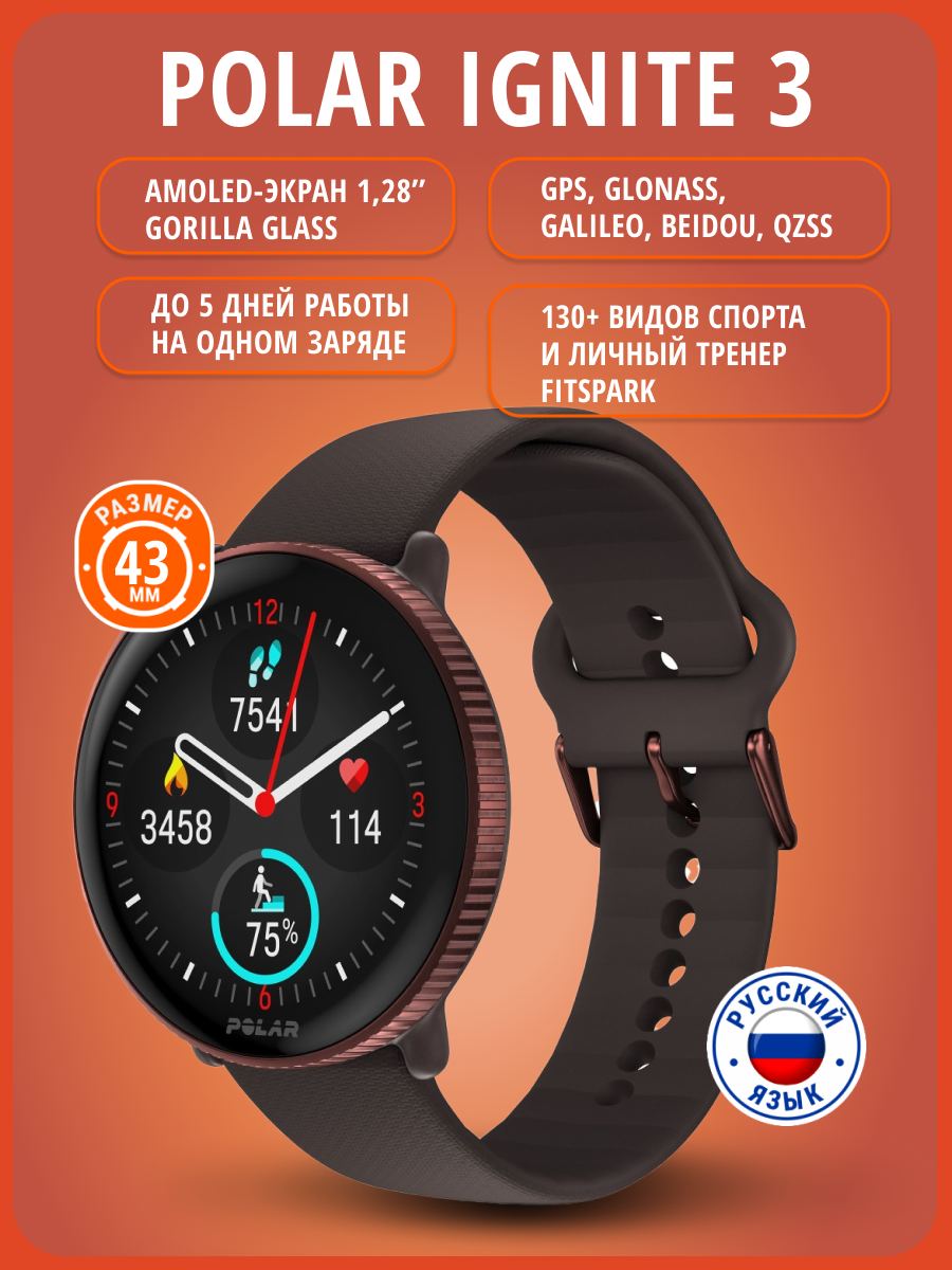 Купить Умные часы Polar Ignite 3, Brown с доставкой по всей России.