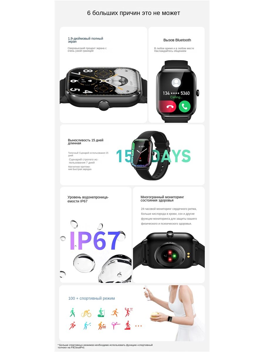 | Дополнительные функции | барометр, вибрация, динамик, дыхательная гимнастика, календарь, калькулятор, таймер, шагомер |