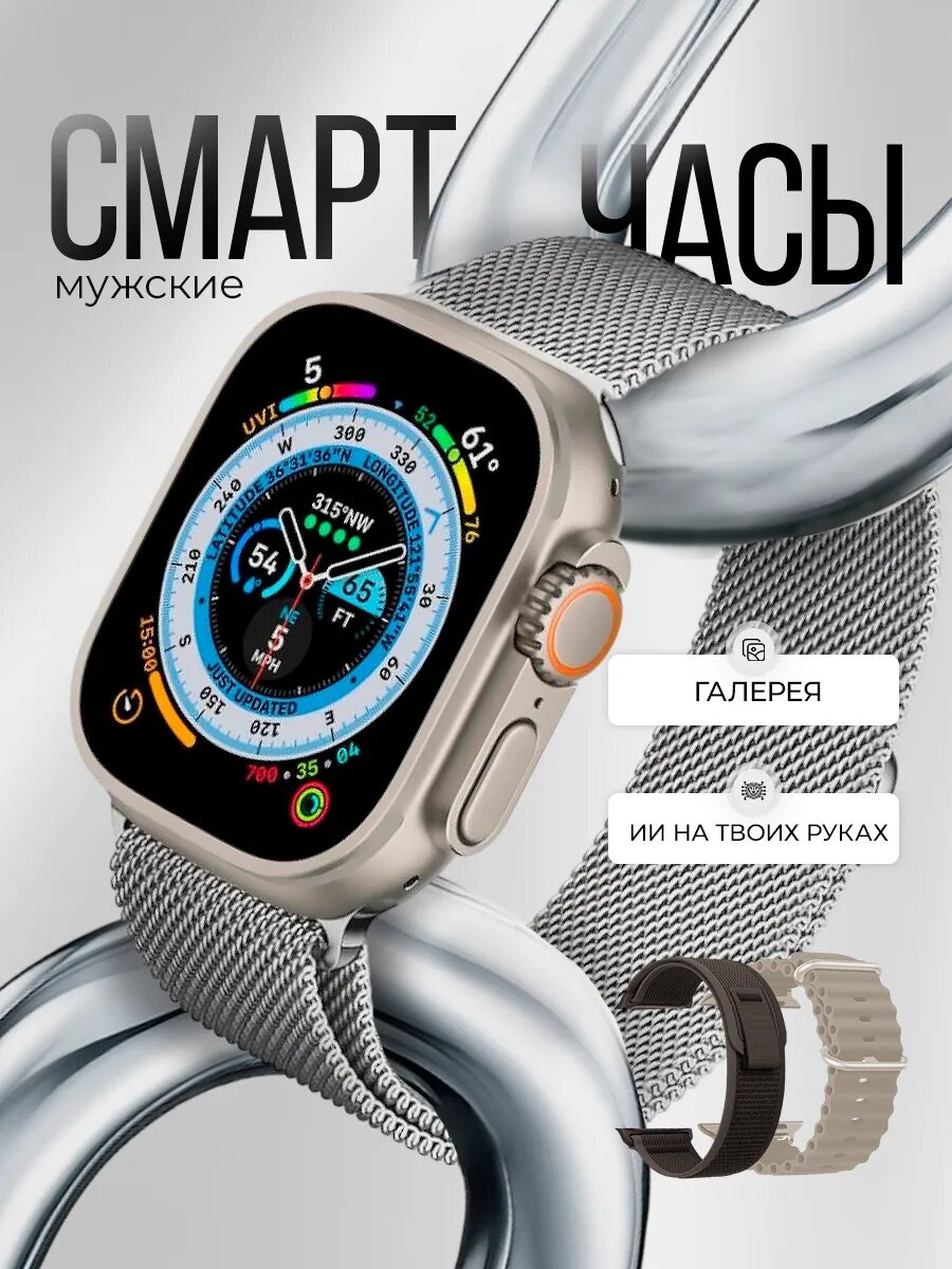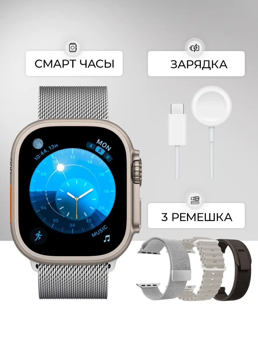 Купить Умные часы Smart Watch X Ultra IP68, 49 мм, NFC, AMOLED-дисплей, 3 ремешка в комплекте, Серебристый с доставкой по всей России.
