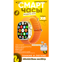 Смарт часы Smart Watch X8 Ultra 2025, 49 mm, наручные умные смарт часы мужские, женские. Оранжевые