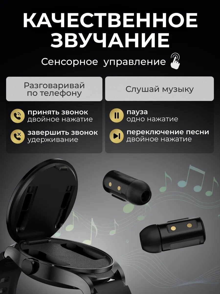 Умные часы с наушниками имеют множество функций, таких как измерение пульса, мониторинг сна, шагомер и другие. Они помогут вам следить за своим здоровьем и физической активностью.