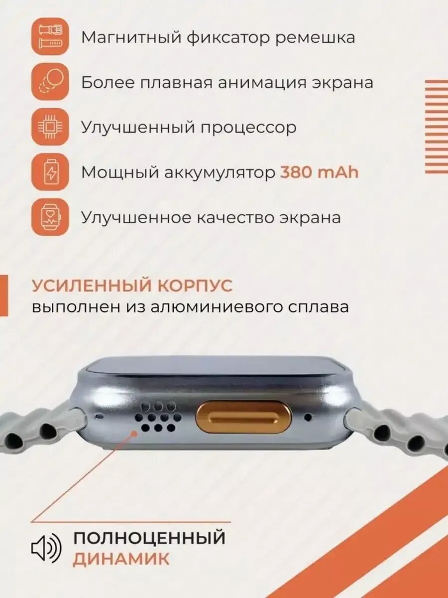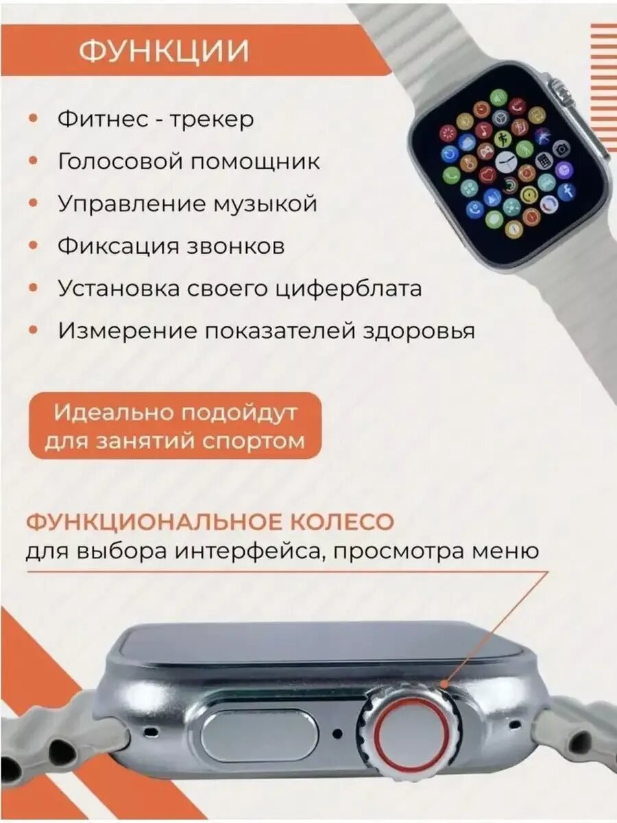 | Дополнительная информация | Smart Watch T800 ULTRA - модель умных часов с функцией многофункционального фитнес-трекера, подойдут на каждый день для взрослого человека, живущего в ритме большого города. Смарт-часы T800 ULTRA работают как пульт дистанционного управления смартфоном, позволяя своевременно получать и передавать необходимую информацию, не доставая телефон из кармана или сумки. |