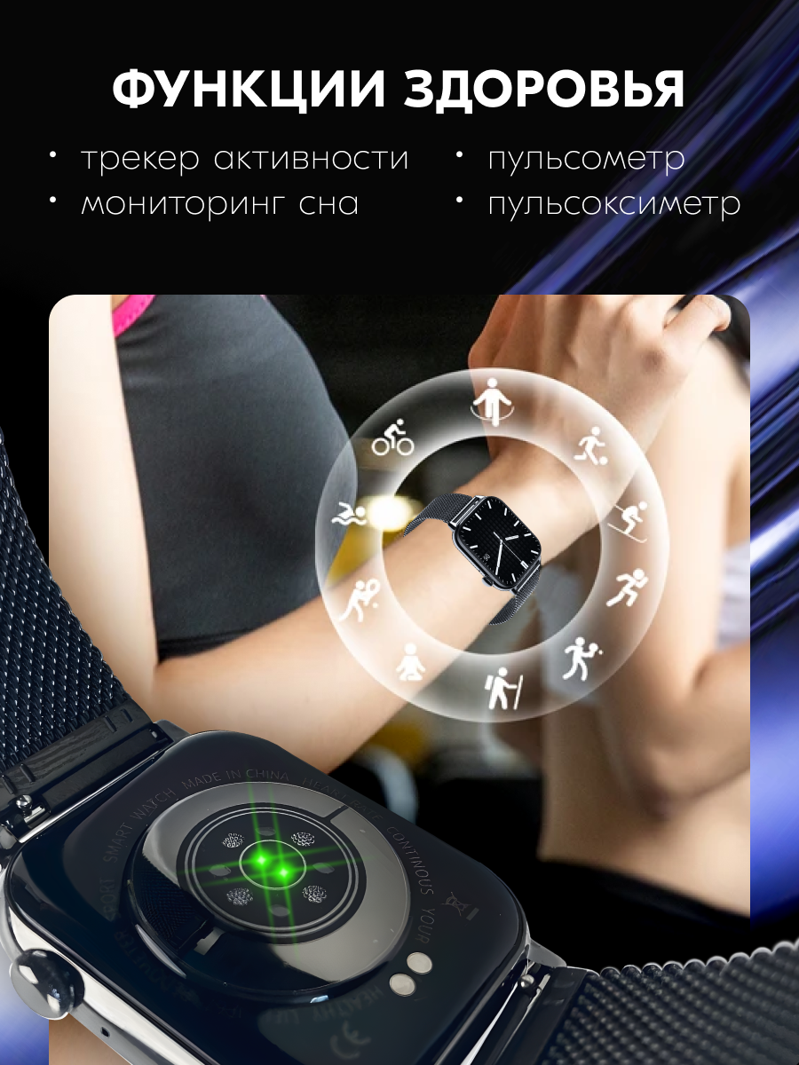 Купить Умные часы ZDK HD11, с сенсорным экраном, цвет черный, 1.85 дюйма, с металлическим ремешком с доставкой по всей России.