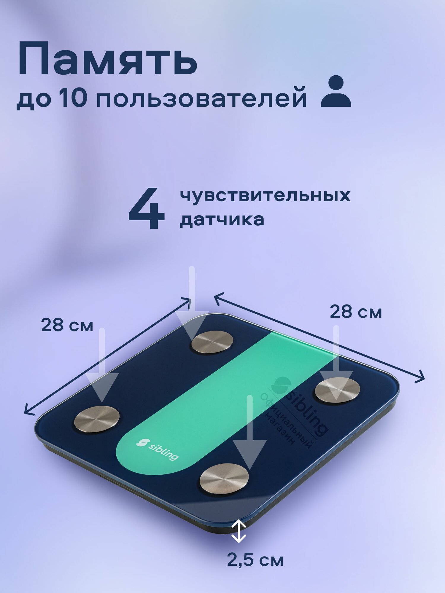 Умные напольные электронные весы Sibling Powerspace-SB, синие, с приложением: сравнение цен, характеристики, фото, актуальное наличие и цены.
