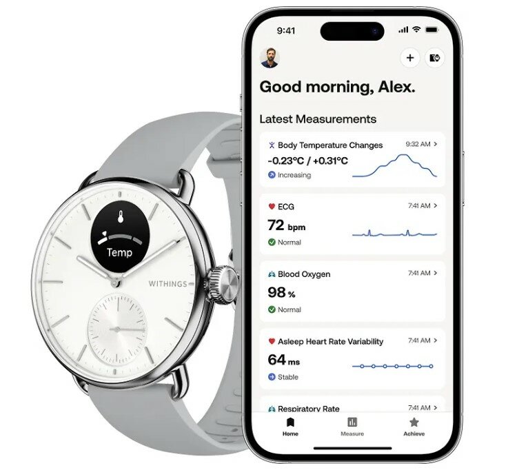 Умные наручные часы Withings Scanwatch 2, 38mm OLED-экран, мониторинг сна и температуры, белые: сравнение цен, характеристики, фото, актуальное наличие и цены.