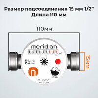 Размер подсоединения счетчиков в данном комплекте 15 мм 1/2’’, а их длина 110 мм