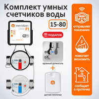 Комплект умных счетчиков воды и устройства Meridian Wi-Fi с возможностью автоматической передачей показаний в ЖКХ (управляющие компании, расчетные центры, мос. ру, МосОблЕирц и др.) Передача показаний производится с помощью любой Wi-Fi сети.