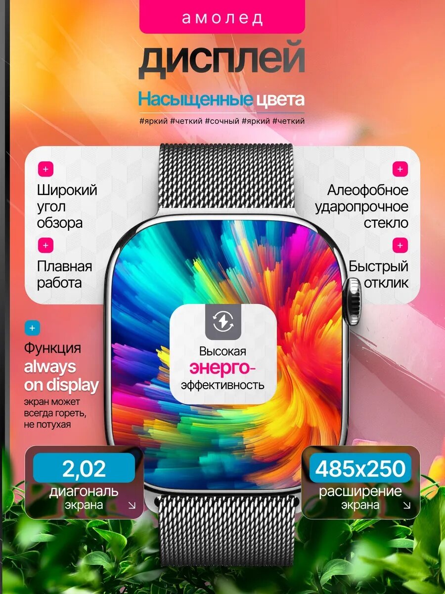 Smart watch HK 11 pro max оснащены ярким AMOLED-дисплеем с диагональю 2.2 дюйма, защищенным стеклом, что обеспечивает четкое изображение и устойчивость к царапинам. Модель 11 серии обладает широким функционалом, включая отслеживание физической активности (шагомер, бег, спортивная ходьба, фитнес), мониторинг здоровья (датчики артериального давления, пульса, температуры, дыхания), а также ряд полезных функций, таких как будильник, вибрация, диктофон, динамик и управление музыкой. С водонепроницаемостью IP67 вы можете не беспокоиться о воздействии влаги. Можно заниматься спортом, мыть руки не снимая часы. Не рекомендуется полное погружение под воду и воздействие пара.