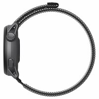 Данная модель представлена в черном цвете с нейлоновым ремешком. На ремешке присутствует полоса красного цвета. Помимо часов в комплект входит кабель для зарядки и синхронизации.