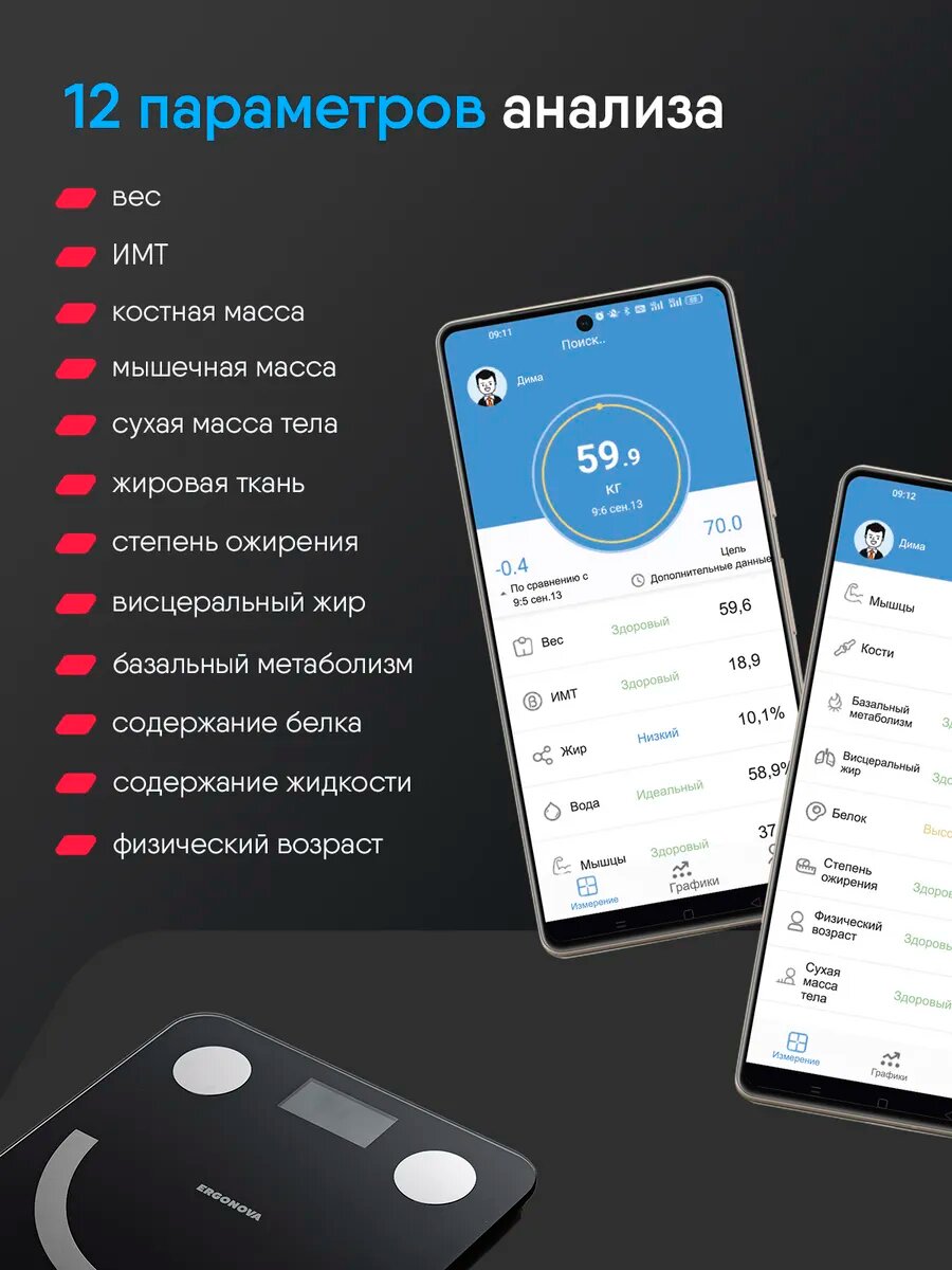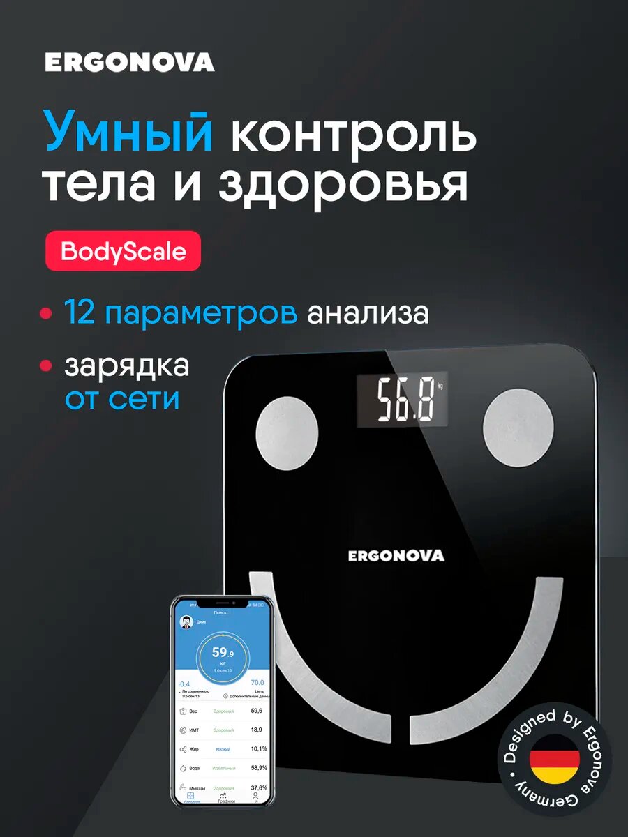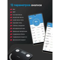 | Дополнительные функции | определение доли воды, определение доли жировой ткани, определение доли костной ткани, определение доли мышечной ткани, расчет ИМТ (BMI) |