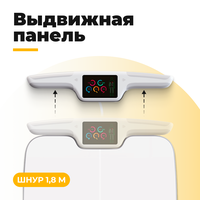 | Дополнительная информация | Висцеральный жир, Индекс массы тела, Костная масса, Мышечная масса, Основной обмен веществ (BMR), Содержание воды, Тип телосложения |
