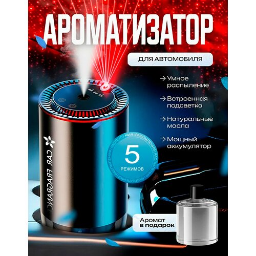 Этот устройство выполнено в топовой комплектации и изготовлено из прочного сплава. Оснащено функцией создания иллюзии звездного неба на потолке. Предоставляет пять уровней интенсивности распыления, что позволяет настроить устройство в соответствии с вашими предпочтениями. Система интеллектуального распыления воздействует эффективно, распределяя аромат равномерно. Атмосферная подсветка создает приятную обстановку, а встроенный фильтр помогает устранять нежелательные запахи и освежает воздух в салоне.