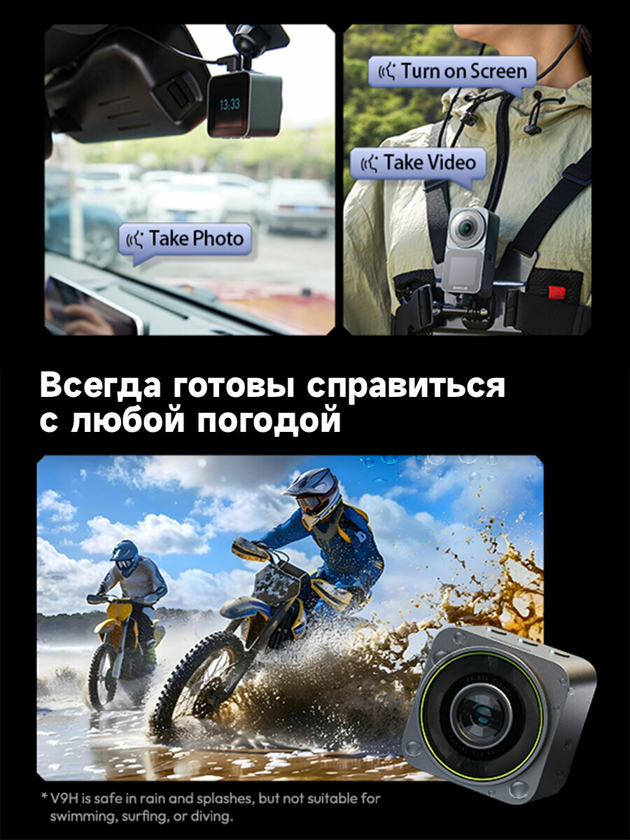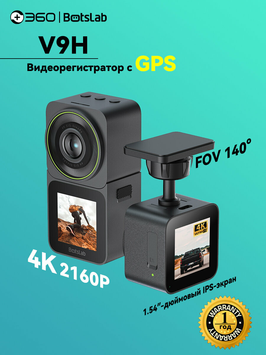 Умный Автомобильный видеорегистратор 360 Botslab 2-в-1 экшн-камераV9H, 4K, Wi-Fi, парковочный режим