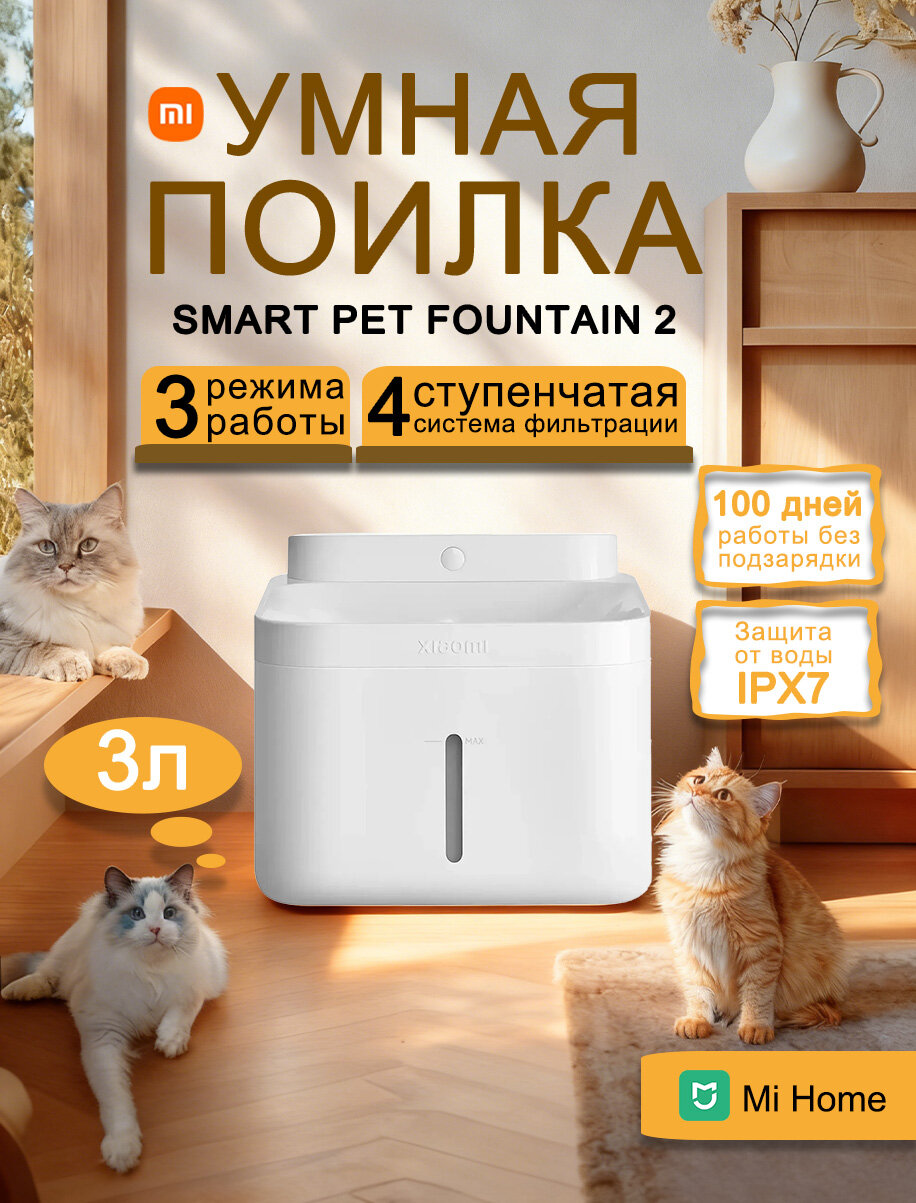Купить Умный беспроводной диспенсер для домашних животных Xiaomi Mijia Smart Pet Water Dispenser 2, CN с доставкой по всей России.
