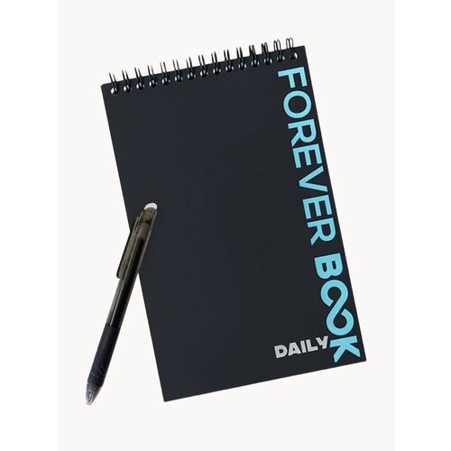 Вечный блокнот ежедневник Forever Book Daily называют лучшим блокнотом в мире. Почему? Благодаря специальным чернилам в ручке, что входит в комплект, и материалу листов самого планера, все записи можно легко стереть влажной салфеткой и писать заново на чистых листах. Заявленного количества стираний нет, вы можете пользоваться многоразовым блокнотом. вечно! Наш умный блокнот - это внешне стильный аксессуар, который легко поместится в обычную сумку или рюкзак и станет отличным рабочим инструментом также и для деловых людей - мужчин и женщин. Ежедневник недатированный. Его можно подарить коллеге или начальнику, студенту или школьнику, преподавателю, художнику или писателю и поэту. Это красивый и необычный подарок на любой праздник: день рождения, Рождество или Новый год Не подвергайте блокнот перегреву более 30 градусов - надписи могут исчезнуть.