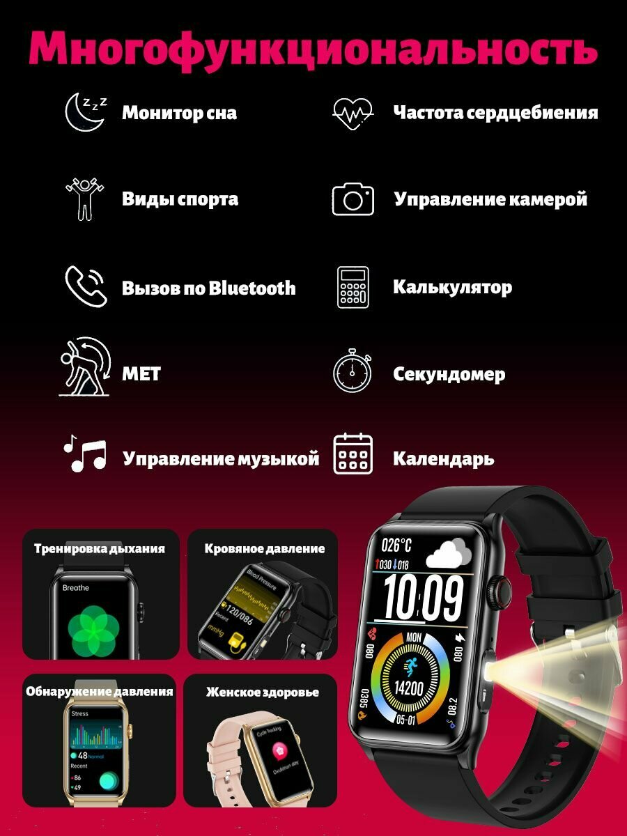Купить Умный браслет Для мужчин и женщин Измерение сахара в крови, давление, кислород, звонки по Bluetooth и фонарик с доставкой по всей России.