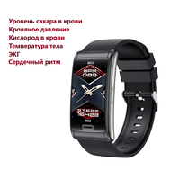 Функции: неинвазивный глюкометр (измерение сахара в крови), измерение артериального давления, кислород в крови, ЭКГ с диагнозом, температура тела, пульс, мониторинг качества сна, шагомер, счетчик калорий, спортивные режимы, уведомления от смартфона, погода, будильник, женский календарь, поиск смартфона, управление камерой.