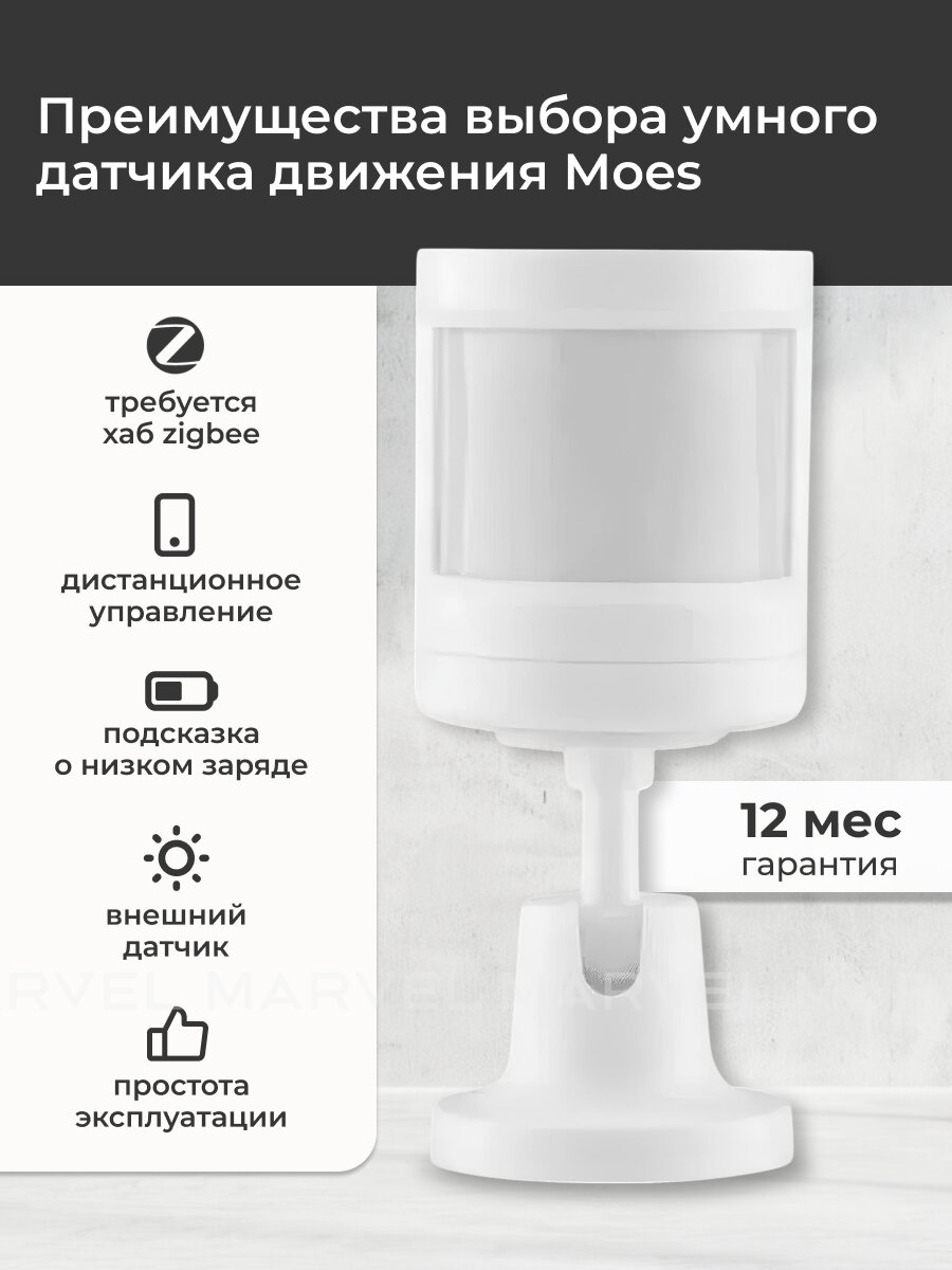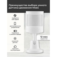 Умный датчик движения с голосовым управлением Moes ZSS-X-PIR-C-MS / датчик присутствия беспроводной, ZigBee, белый: сравнение цен, характеристики, фото, актуальное наличие и цены.