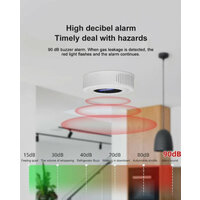 Купить Умный датчик утечки газа WiFi 433Мгц. Дыма/ Wi Fi / Пожарный/Универсальный/Управление со смартфона / TUYA / С Датчиком температуры/ 3 в 1. Гиперчувствительный, Можно подключить охранной системе с доставкой по всей России.