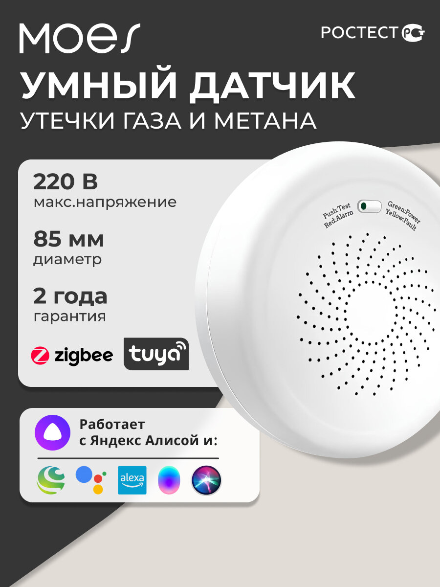 Датчик утечки газа Moes ZSS-QY-GL-U-MS / для умного дома, со звуковым сигналом и голосовым управлением, ZigBee, белый: сравнение цен, характеристики, фото, актуальное наличие и цены.