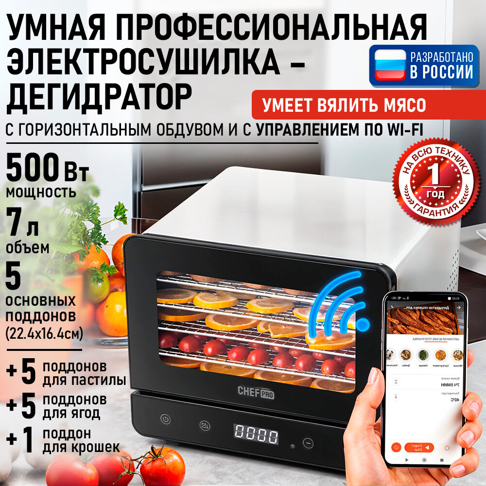 Купить Умный дегидратор сушилка для овощей электросушилка с WIFI CHEF PRO CF-FD808A профессиональная с горизонтальным обдувом с доставкой по всей России. Умный дегидратор сушилка для овощей электросушилка с WIFI CHEF PRO CF-FD808A профессиональная с горизонтальным обдувом: сравнение цен, характеристики, фото, актуальное наличие и цены.