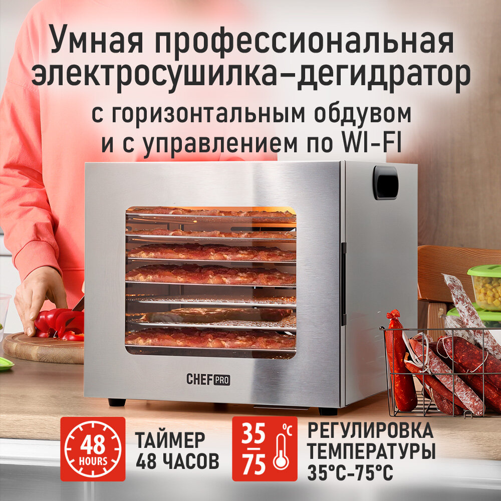 Купить Умный дегидратор сушилка для овощей электросушилка с WIFI CHEF PRO CF-FD811A профессиональная с горизонтальным обдувом с доставкой по всей России. Умный дегидратор сушилка для овощей электросушилка с WIFI CHEF PRO CF-FD811A профессиональная с горизонтальным обдувом: сравнение цен, характеристики, фото, актуальное наличие и цены.