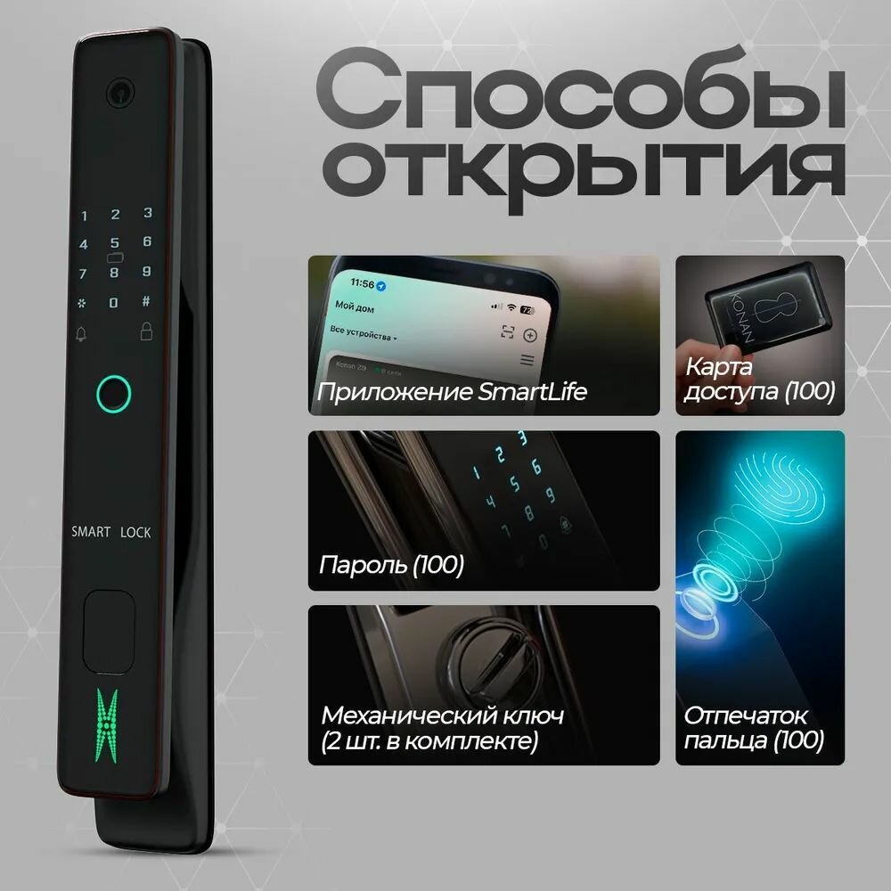 Купить Умный замок Konan Z6 электронный с отпечатком пальца, встроенный Wi-Fi, русский язык с доставкой по всей России.