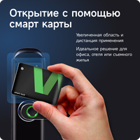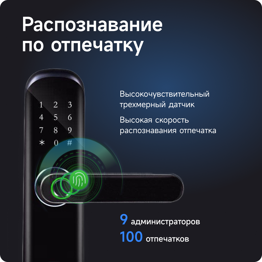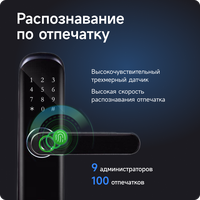 Умный биометрический замок HR01 способен стать основой системы доступа в помещение посредством телефона с приложением, вводом пинкода, касанием RFID-ключа, прикосновением пальца к считывателю (вход по отпечатку) или обычного железного ключа. Работает от 4-х элементов типа ААА. Располагает электронной и механической частями и не вызывает трудностей при монтаже. К отличительным особенностям можно отнести: память на 100 отпечатков пользователей и 100 паролей, а также поддержку 100 IC-карт (rfid mifare). Низкое энергопотребление в режиме ожидания (не более 50 мкА) сохранит заряд элементов питания на продолжительное время. Механическая часть представлена в размере 22х160мм. Тип двери для монтажа - правый (замок размещен на левой стороне двери при открывании ее внутрь помещения)