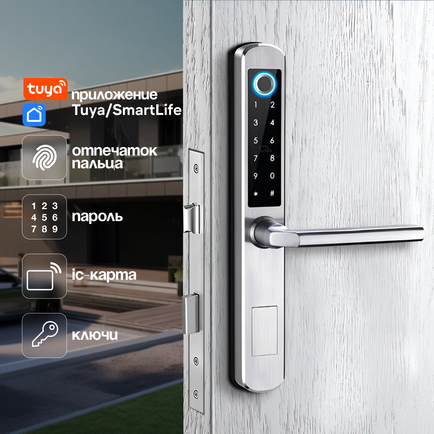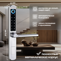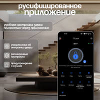 Благодаря функции отпечатка пальца достаточно просто прикоснуться к сканеру, и дверь откроется автоматически. Кроме того, умный замок оснащен Wi-Fi модулем, который позволяет управлять им с помощью смартфона, даже находясь за пределами дома. Вы можете дистанционно управлять замком через русифицированное приложение Tuya для IOS и SmartLife для Android, в котором собраны все команды для замка: создание паролей, открытие/закрытие замка, уведомления о взломе, настройка отпечатков пальцев и т. д. Способы открывания замка: приложение, отпечаток пальца, пароль, ключ, IC-карта.