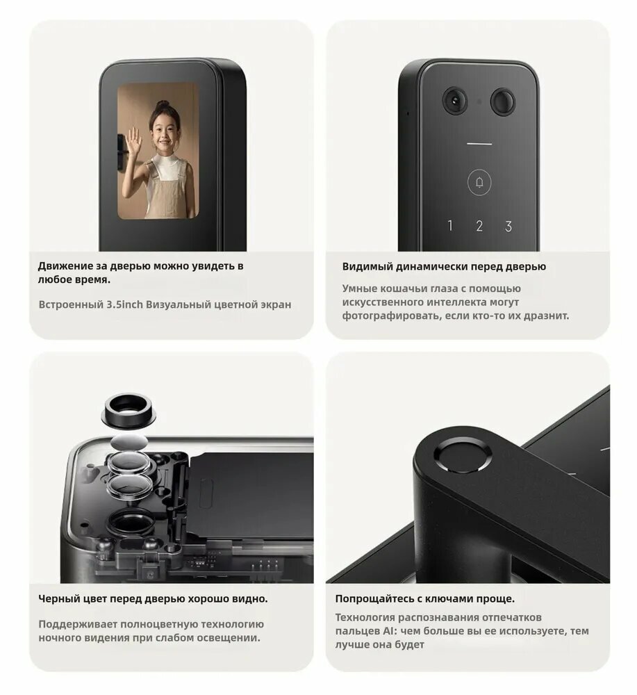 Умный дверной замок Версия кошачий глаз с большим экраном Xiaomi Smart Door Lock E30 Cat eye version XMZNMST11LK(Mihome APP, HyperOS), Черный: сравнение цен, характеристики, фото, актуальное наличие и цены.