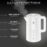 Чайник нового поколения. Лаконичный дизайн, интуитивно понятное управление и широкий функционал дают преимущество KET-6 перед конкурентами. Дистанционное управление. С помощью приложения SLS Вы сможете управлять чайником даже находясь вдали от него: активация, установка температуры, создание расписания работы - эти и многие другие функции становится доступны для КЕТ-6 после его интеграции в Вашу домашнюю экосистему. Работа с голосовыми помощниками. KET-6 поддерживает работу с наиболее распространёнными голосовыми ассистентам:Алиса. Автоматизация работы. Одна из отличительных особенностей экосистемы SLS являются сценарии. Сценарий - это настраиваемая пользователем цепочка действий, в которую включены два и более девайсов. Данная функция позволит Вам автоматизировать работу KET-6. Безопасность и долговечность. Корпус чайника выполнен из нержавеющей стали и высококачественного пластика, что является залогом долгой службы, а защита от перегрева и выкипания вкупе убережёт чайник от быстрого изнашивая, тем самым продлив его жизнь.