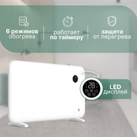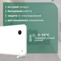 Обогреватель обеспечивает процесс естественной конвекции воздушных потоков и обогрева помещения до 30 кв. метров. Он оснащен тремя предустановленными режимами с различной интенсивностью обогрева в течение суток, а также возможностью регулировки температуры двумя способами: удаленно через приложение SLS или с помощью цифровой панели управления.