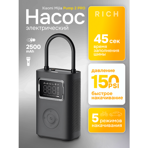 Насос xiaomi, Компрессор xiaomi, автомобильный компрессор, компрессор аккумуляторный, насос автомобильный. Параметры продукта Название продукта-надувные сокровища 2 Pro MiJIA Модель продукта-MJCQB07PQW Давление накачки-0,2-10,3 бар/3-150 фунт/кв. Дюйм Рабочая температура --- -10 -45 Номинальный вход-5 В = 3А Номинальная емкость-2500 мАч Номинальная энергия -- 27 Втч Время зарядки-около 3,5 часов Размер продукта-около 152 × 100 × 63 мм (размер голой машины, без газовой трубы высокого давления) Характеристики продукта 45 секунд быстрого пополнения запасов газа Светодиодный освещение + аварийное освещение автомобиля Можно пополнить 16 шин Скорость ремонта шин 205, шина 2,0 2,5 бар, примерно 45 секунд Скорость пустой шины 205 шина 0 2,5 бар примерно 3,5 минут Время автономной работы составляет около 3,7 шин Отображение хода инфляции Рабочее напряжение 10,8 V USB-C интерфейс зарядки Максимальное давление 150 фунтов на квадратный дюйм. Умный электрический насос Xiaomi Mijia Electric Pump 2 Pro (MJCQB07PQW)