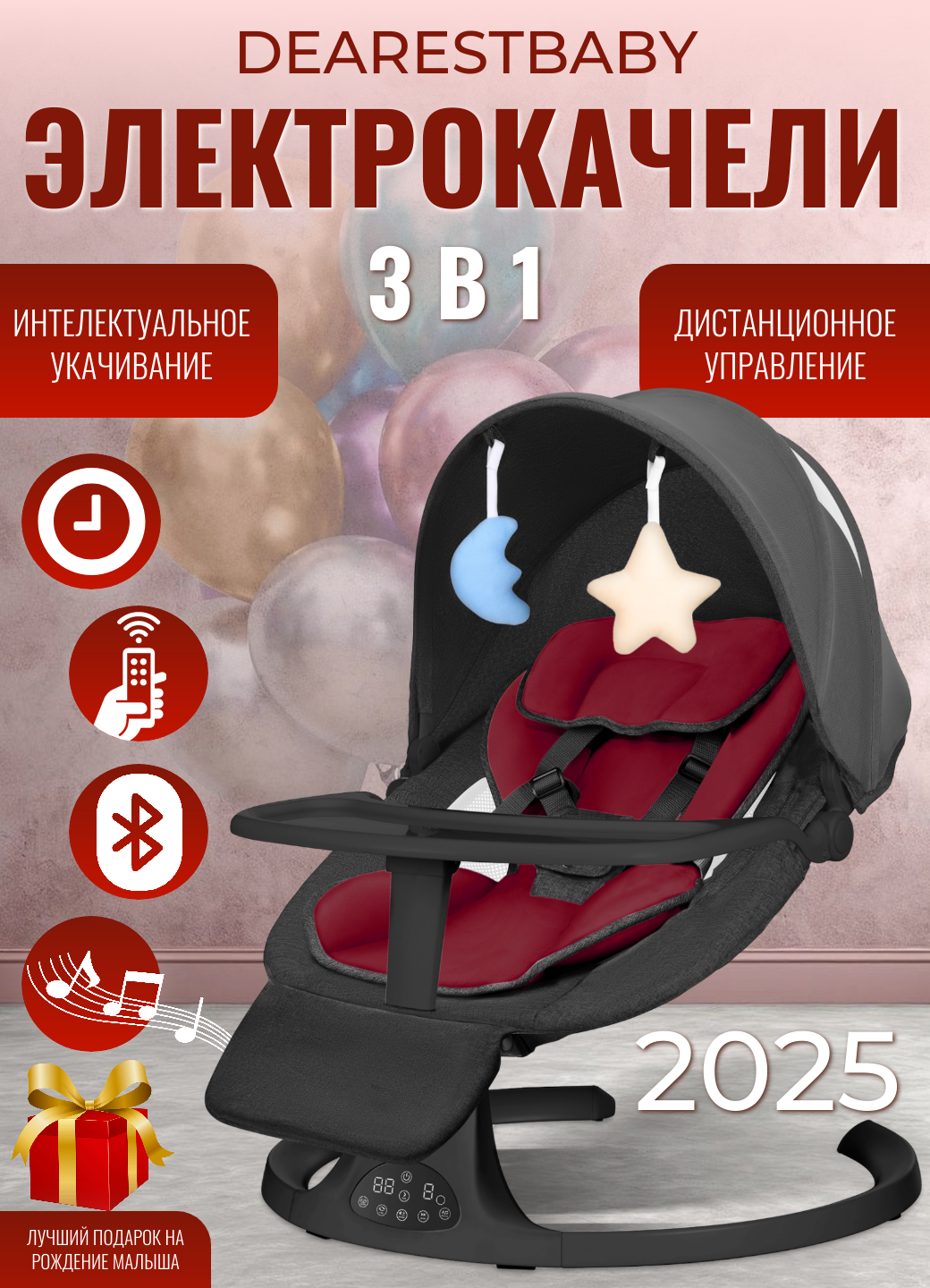 Умный электронный шезлонг Dearest Black Deluxe 3в1, электрокачели для новорожденных, качели с Bluetooth, с пультом ДУ: сравнение цен, характеристики, фото, актуальное наличие и цены.