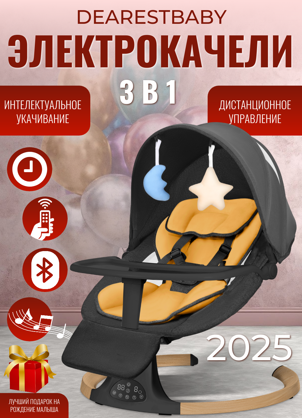 Умный электронный шезлонг Dearest Wood Deluxe 3в1, электрокачели для новорожденных, пульт ДУ, с Bluetooth, музыкальные: сравнение цен, характеристики, фото, актуальное наличие и цены.
