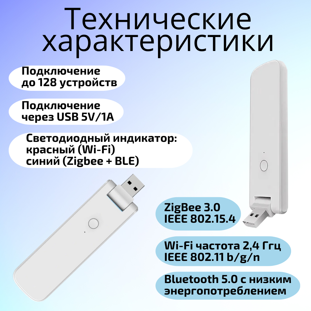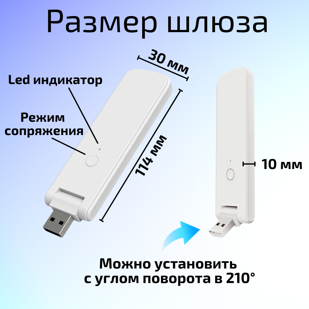 Умный хаб / шлюз Tuya ZigBee + Bluetooth + Wi-Fi является центром управления умного дома Tuya, подключатся через Wi-Fi, работает по ZigBee и Bluetooth протоколу. Хаб вв иде флешки можно установить в 210 градусов. У вас есть возможность создать умный дом, в котором все гаджеты будут настроены на взаимодействие друг с другом благодаря центру управления Tuya Zigbee 3.0. Этот шлюз является основой вашей системы умного дома, и он сделает все ваши устройства совместимыми и управляемыми с единого пульта управления. Благодаря этому хабу, у вас появится возможность полноценно наслаждаться всеми преимуществами умных технологий и значительно упростить свою жизнь. Этот блок управления поддерживает различные протоколы, такие как Zigbee, WIFI и BLE 5.0, что позволяет ему соединять и контролировать множество устройств. Благодаря этому, вы сможете подключить к модулю управления различные сенсоры, реле, датчики температуры и влажности, выключатели, умные шторы, умный замок, умную лампу, термостат, отопление, кондиционеры, датчик и кран протечки и другими ZigBee и Bluetooth продуктами умного дома Tuya. Для настройки и управления установите на ваш смартфон приложение"Smart Life". Поддерживает локальные сценарии без Интернета. Теперь все ваши гаджеты работают вместе, чтобы предоставить вам максимум удобства и комфорта.