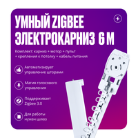 Купить Умный электрокарниз для штор Tuya Zigbee + RF 2 метра, однорядный, бесшумный, с пультом с доставкой по всей России.
