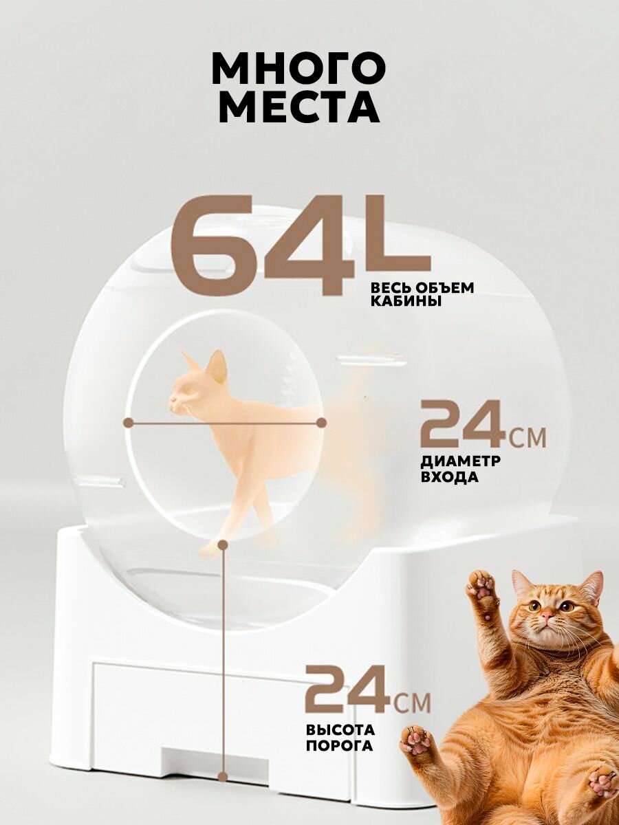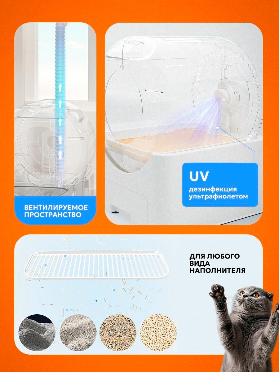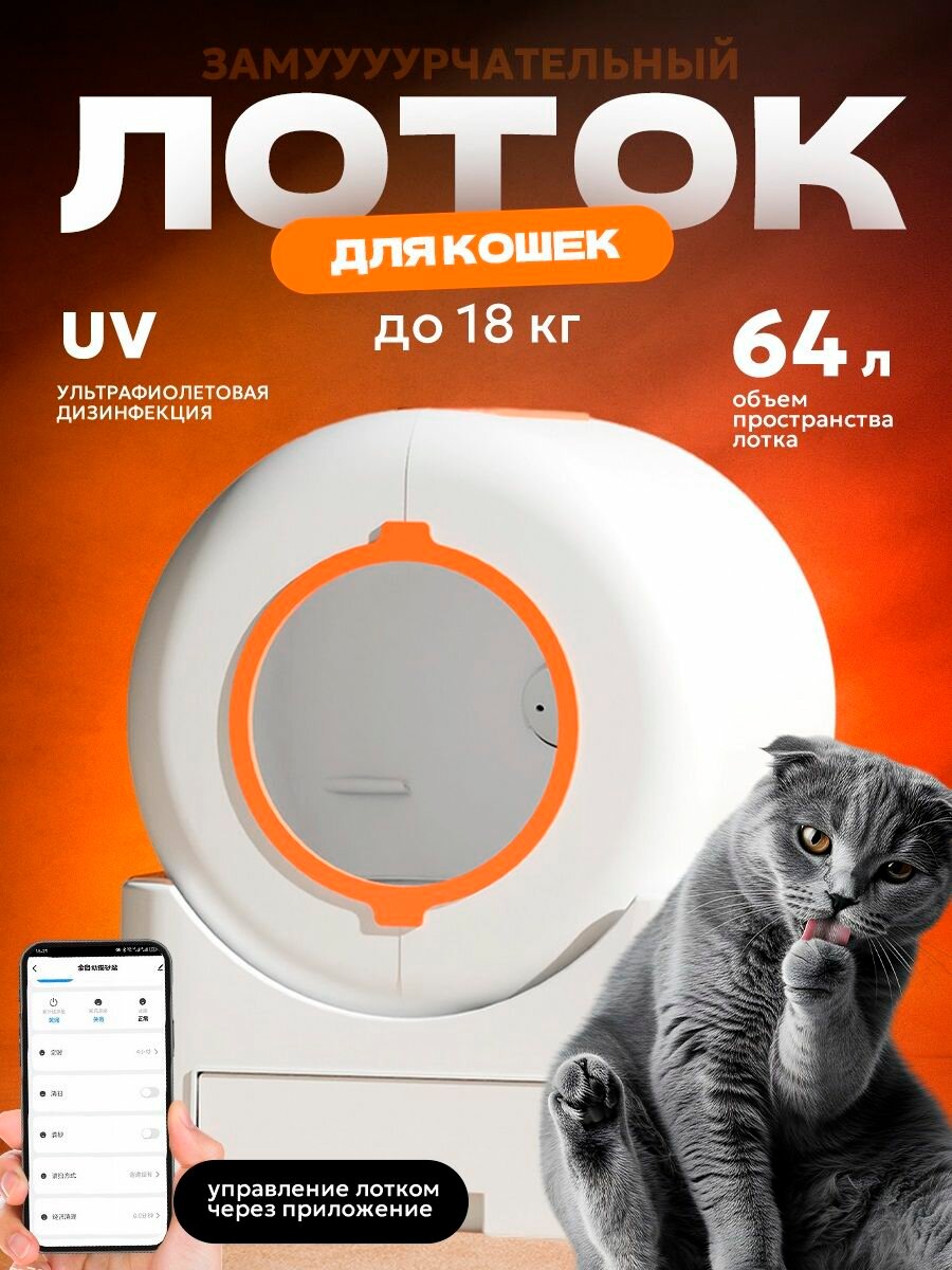 Купить Умный лоток для кошек до 18 кг с выдвижным механизмом для легкой очистки и видеоняней с доставкой по всей России.