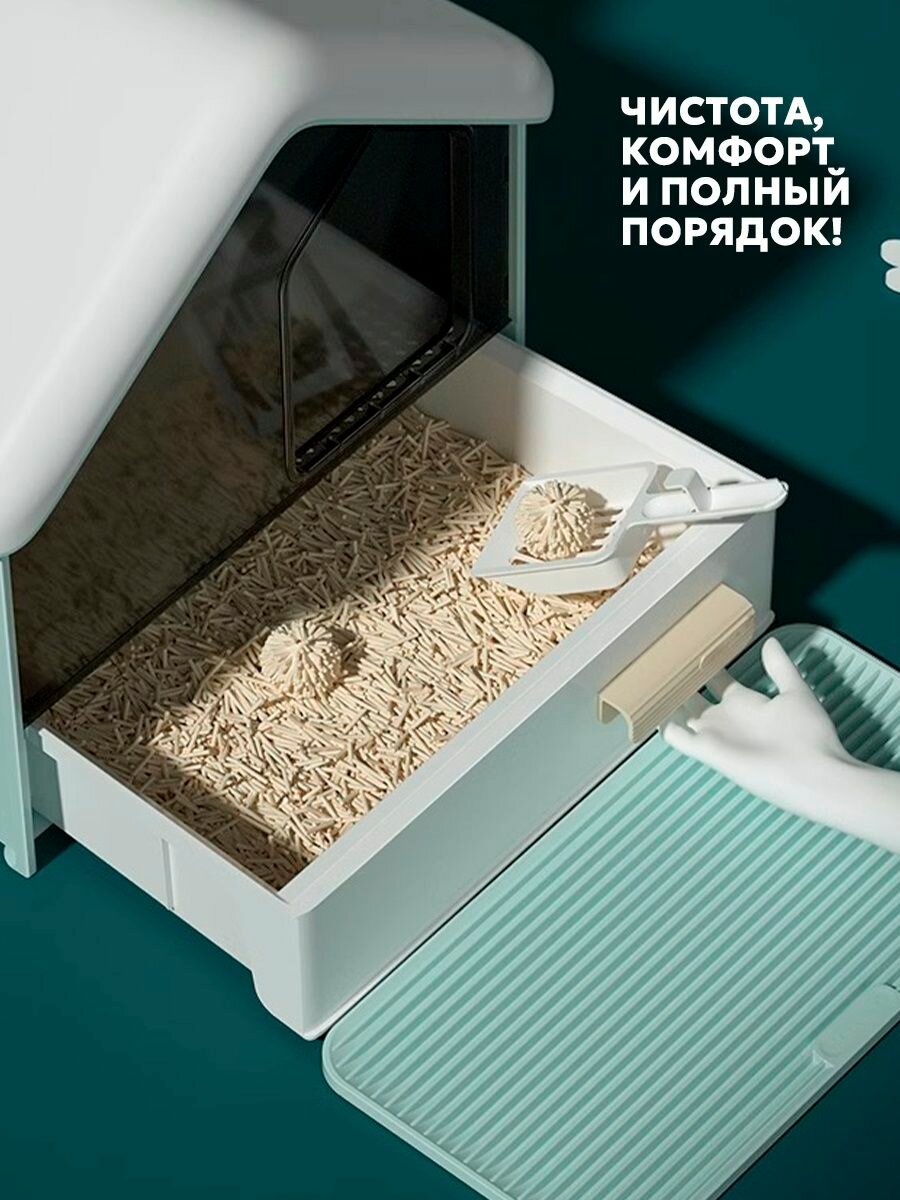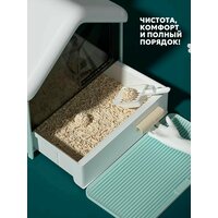 ✅ Широкий вход – подходит для кошек разных размеров. ✅ Система поглощения запахов и дверка – современный фильтр устраняет неприятные ароматы. ✅ Контроль сухости лапок – специальное покрытие предотвращает разнос наполнителя. ✅ Стильный дизайн – впишется в любой интерьер.