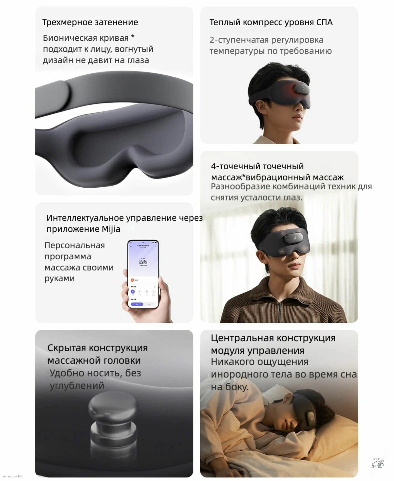Умный массажер для глаз Xiaomi Mijia Smart Massage Eye Mask MJAMYZYMYY01(Mihome APP), черный: сравнение цен, характеристики, фото, актуальное наличие и цены.