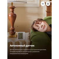 Встроенный дисплей обеспечивает мгновенный доступ к актуальной информации, позволяя пользователям получать данные о состоянии микроклимата без необходимости использования смартфона.