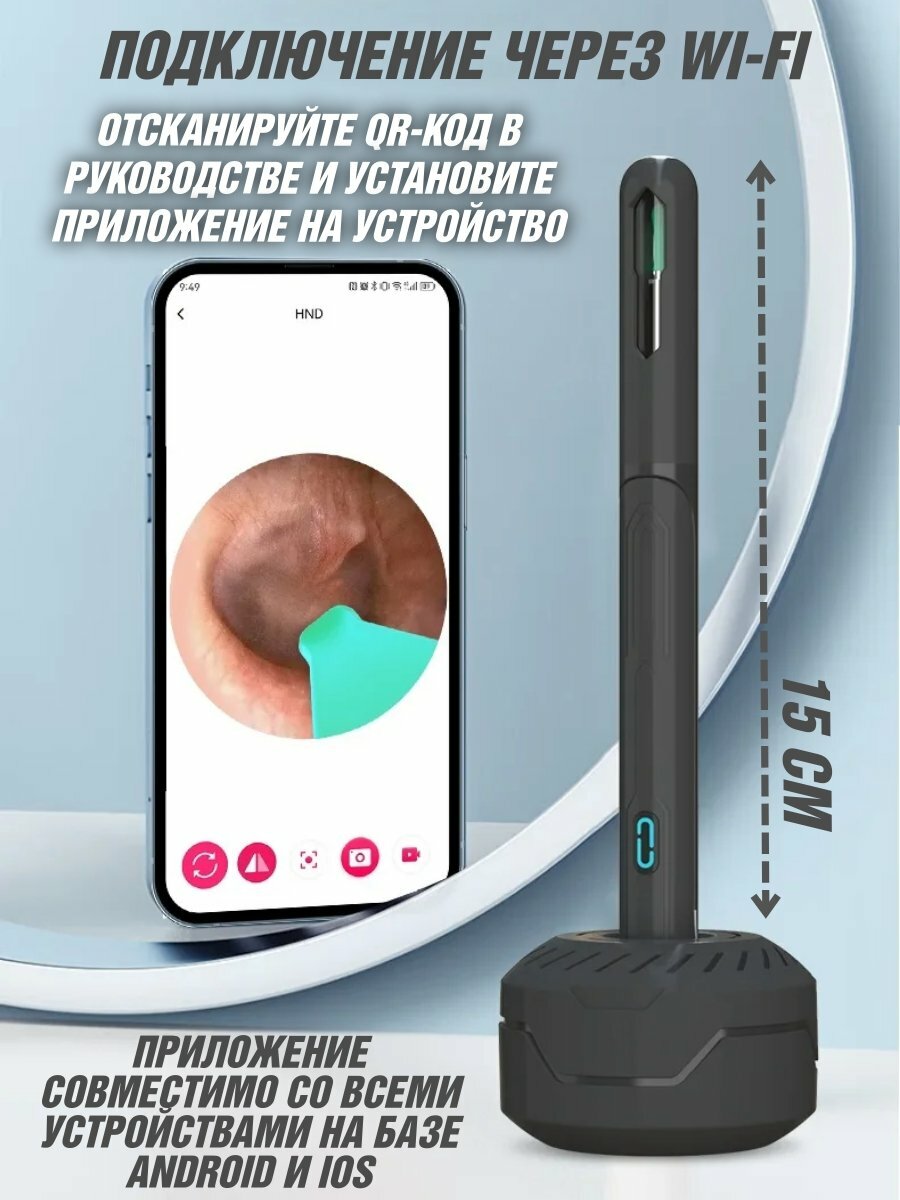 HD-камера: обеспечивает чёткое видео из ушного канала, делая чистку ушей точной и безопасной.