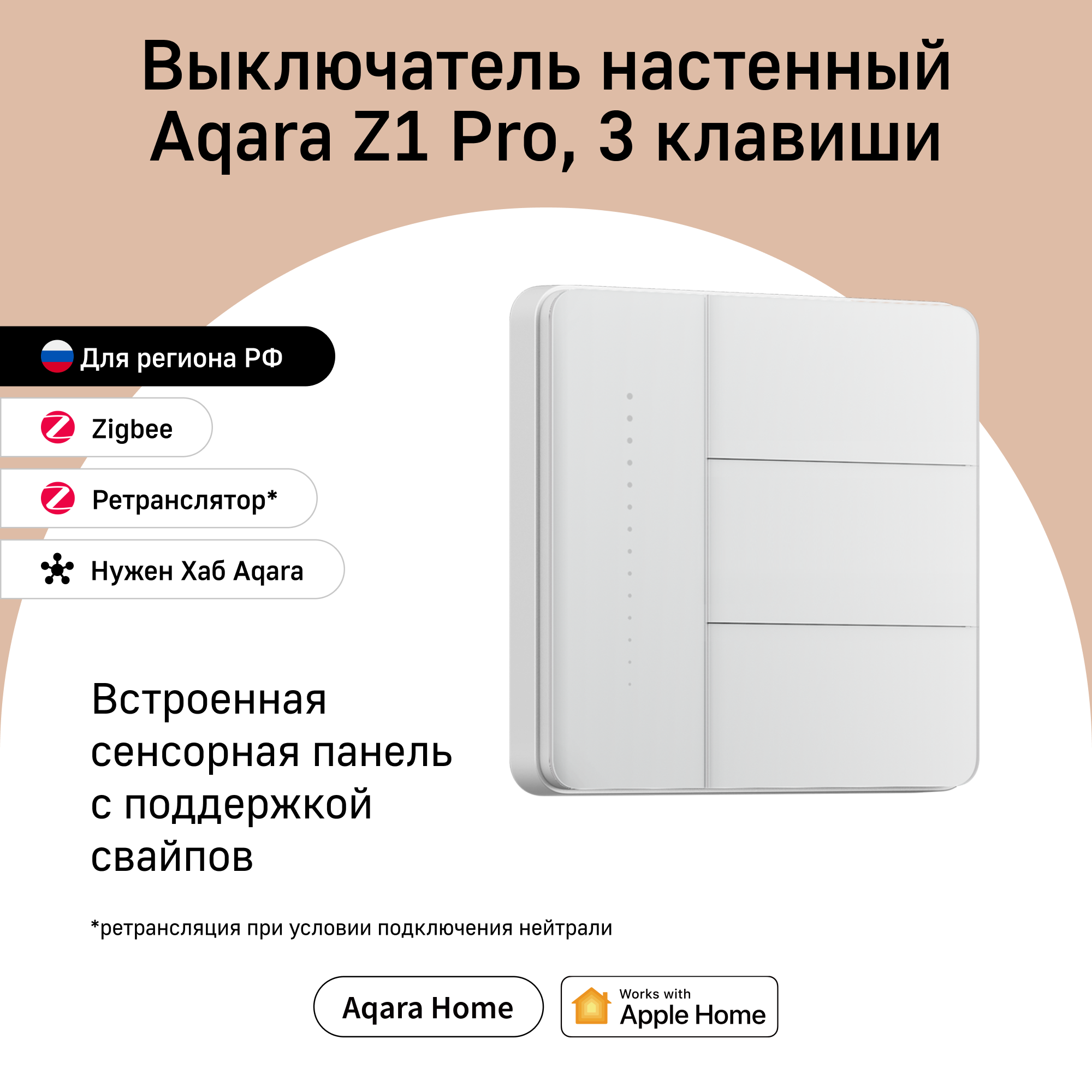 - Умный настенный выключатель Aqara Z1 Pro, трехклавишный, белый.